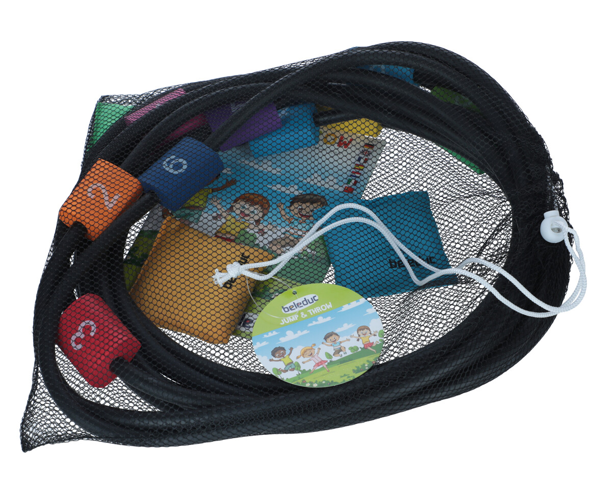 A Beleduc Ugrás és dobás szórakoztató mozgásos játéka 10 színes habkört és 3 dobózsákot tartalmaz, melyekkel többféle játékot lehet játszani. Mindegyikkel a gyerekek a koordinációt, az egyensúlyt, a pontosságot, a koncentrációt vagy a csapatmunkát és az egyszerű matematikát gyakorolják.