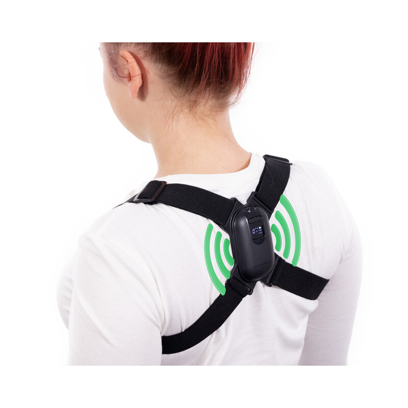 - Rezgés: Ha a készülék rossz testtartást észlel, finoman rezeg, hogy emlékeztesse viselőjét a testtartás módosítására, és arra ösztönzi, hogy egyenesen üljön vagy álljon fel.