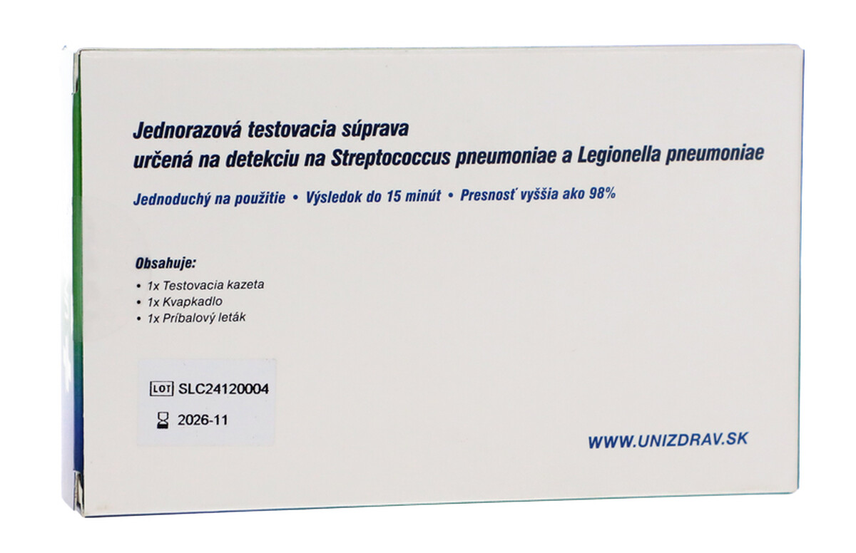 Gyorsteszt a Streptococcus pneumoniae és a Legionella pneumophila antigén kvalitatív kimutatására emberi vizeletben.