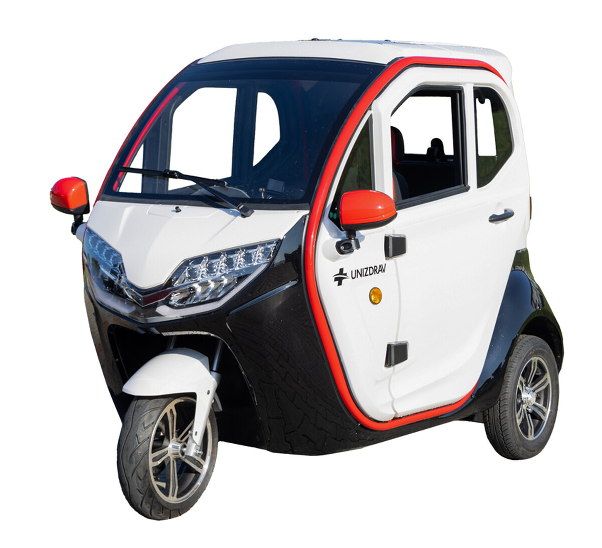 Az UNIZDRAV MiniCar elektromos háromkerekű robogó egyesíti a tricikli ügyességét, a biztonságos mobilitást és a teljesen felszerelt, fedett utastér kényelmét alacsony szállítási költségekkel. Egyszerű kormányozhatóságának és kompakt méreteinek köszönhetően sokkal könnyebben manőverezhet vele a gyakran zsúfolt városokban vagy szűk utcákban.