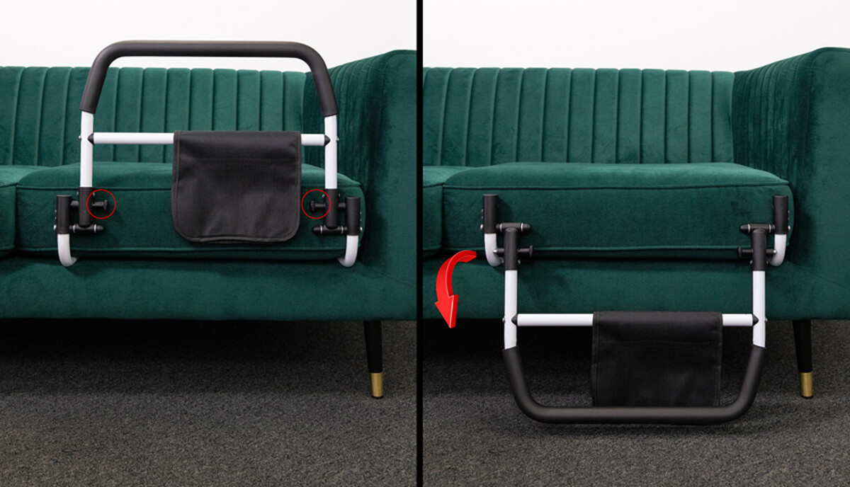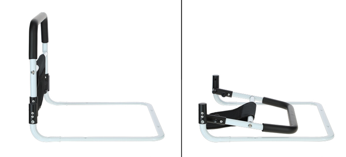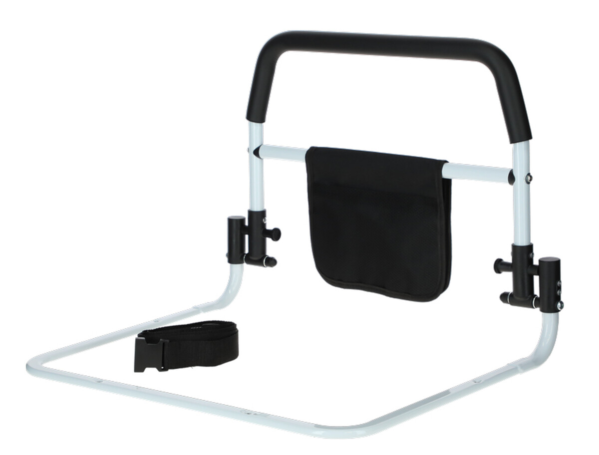 A fogantyú az ágy mindkét oldaláról használható. Állítható nylon hevederrel, csattal rögzíthető az ágyhoz. Ha szükséges, könnyen lehajtható.