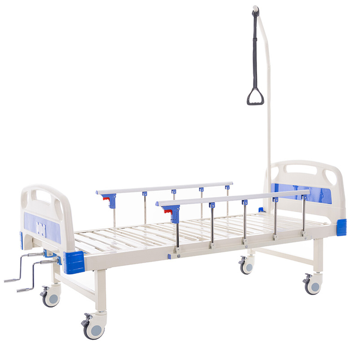 Az oldalkorlátok könnyen lehajthatók, ezáltal megkönnyítik az ápolók számára a beteghez való hozzáférést. Az ágy továbbá kapaszkodóval és állítható hevederrel is rendelkezik.