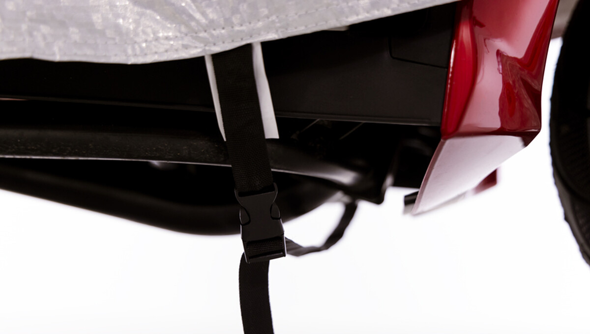 Ezzel a robogó védve van az esőtől, az UV sugárzástól, a portól, a fák és madarak szennyeződésétől vagy a karcolásoktól. Biztonságát a visszapillantó tükrökre és az ülés mögött felvarrt fényvisszaverő elemek növelik.