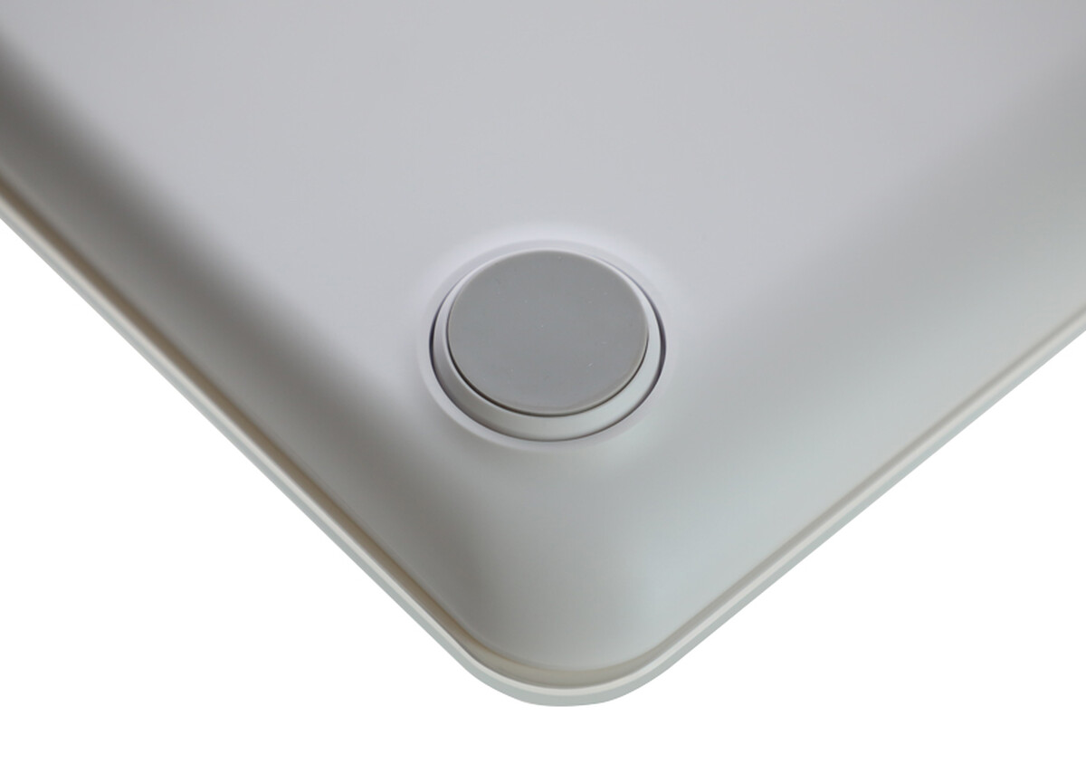 Az integrált edzett üvegpanel dizájnja indium-ón-oxid réteggel elegáns megjelenést kölcsönöz a mérlegnek, miközben biztosítja annak védelmét a külső sérülésekkel szemben.