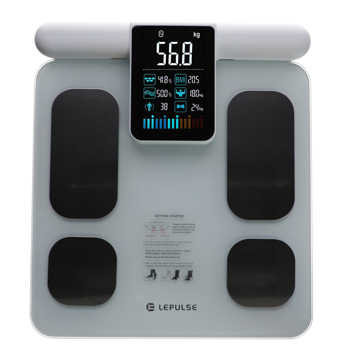 A professzionális intelligens mérleg nagy LED-kijelzővel, közvetlenül a markolaton, fejlett hardverrel és precíz algoritmussal rendelkezik. A készülék 20 testparaméter diagnosztizálását támogatja, amelyek segítenek átfogó képet alkotni testének összetételéről és állapotáról.