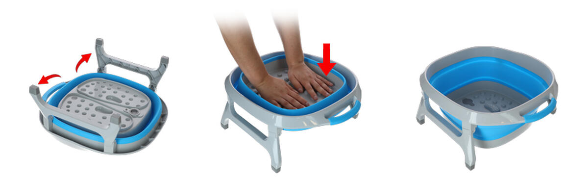 Kompakt, összecsukható kialakítása révén az akupresszúrás lábfürdő bárhol használható. Kevés helyet foglal, könnyen kezelhető és szállítható. Csak meg kell tölteni vízzel, hozzáadni kedvenc illóolajokat, sót vagy más kozmetikumot, és élvezni a kellemes relaxációt.