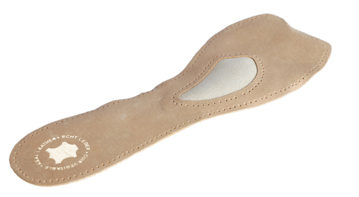 A bőrből készült ortopéd talpbetétek harántemelő alátámasztással rendelkeznek, amely a lábboltozatot a helyes pozícióba igazítja. Járás közben tompítják a lépést és tehermentesítik az ízületeket.
