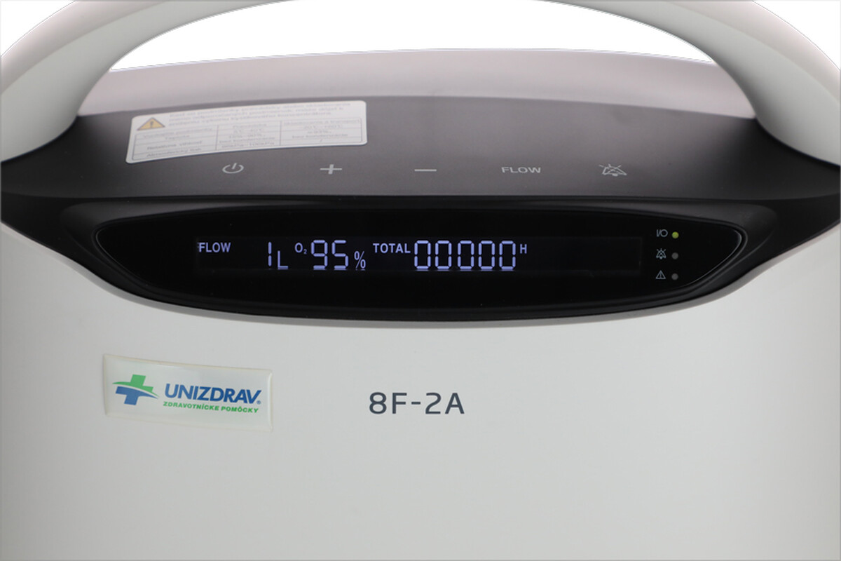 Az UNIZDRAV 8F-2A oxigéngenerátoron beállítható az 1 l/perc vagy 2 l/perc áramlási érték, a kilépő oxigénkoncentráció pedig ≥ 90%. A készülék működés közben legfeljebb ≤ 50 dB zajszintet ér el, így nem zavarja a pácienseket.