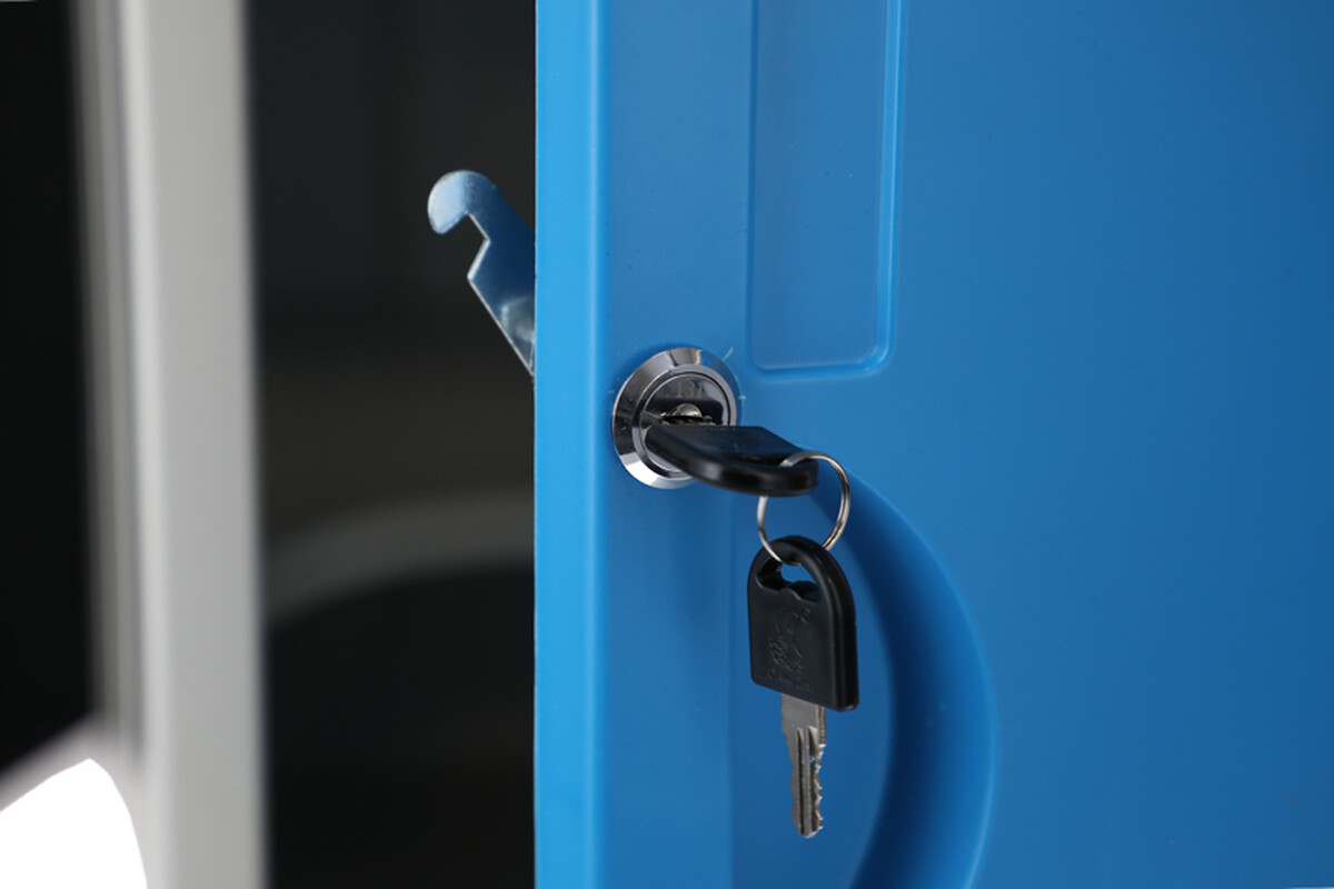 A forgó kerekek fékekkel felszerelve biztosítják a szekrény könnyű és biztonságos mozgatását.