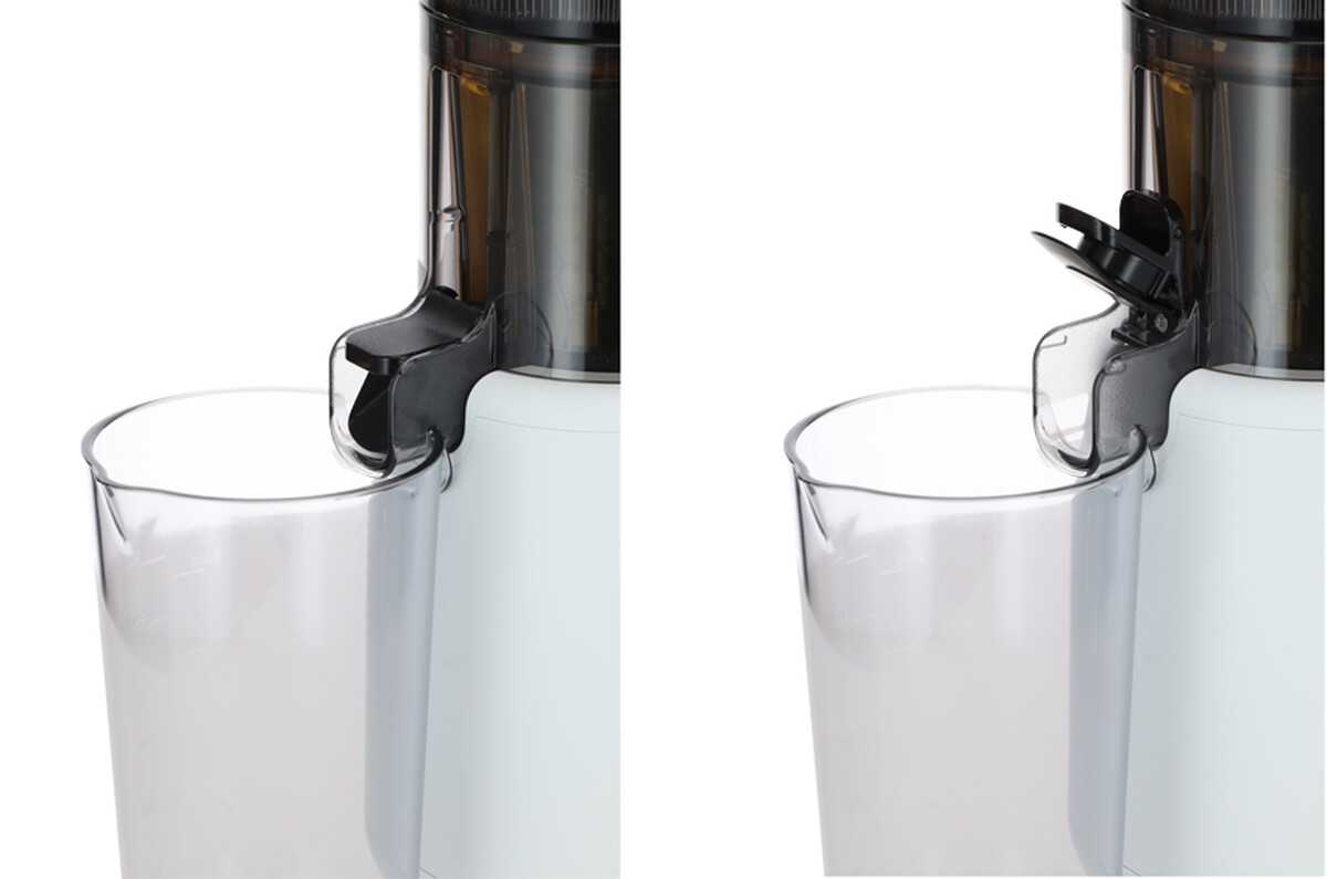 Kellemes bónuszként az automatikus tisztítási mód lehetővé teszi, hogy az alapanyagok préselése között átöblítse a tartályt. A kamrát nem kell eltávolítani, elég lezárni a lékivezetőt, vizet önteni bele, és néhány másodpercig működtetni a gyümölcspréset. A víz áthalad az egész préselőrendszeren, és gyorsan tisztítja azt.