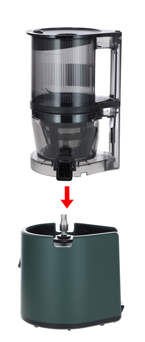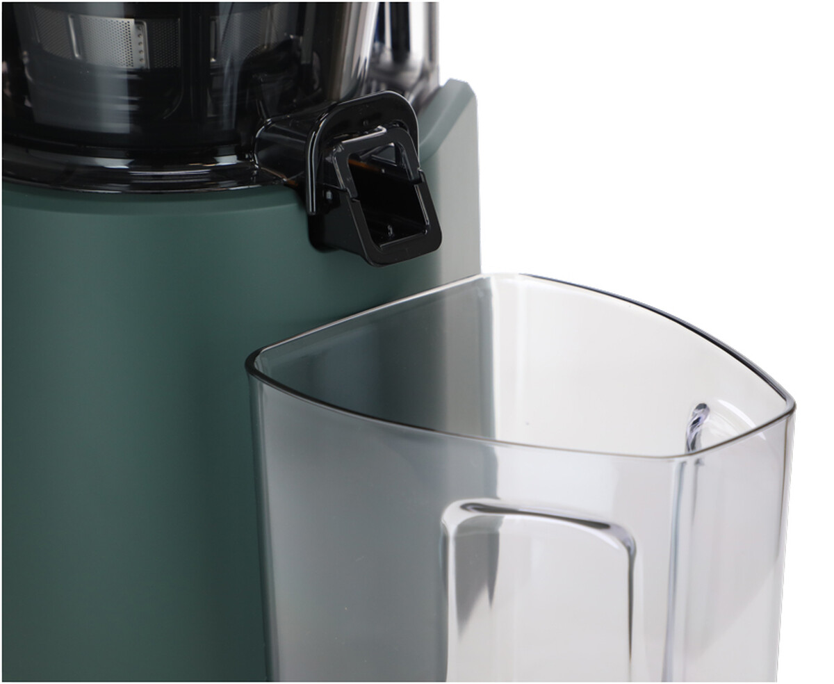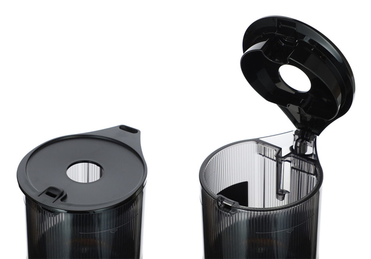 A készülék intuitív módon, egyszerűen össze- és szétszerelhető. A tartály fedele biztonságosan nyitható és zárható a préselés bármely pontján – a fedél felnyitásakor a készülék automatikusan leáll, és zárás után folytatódik a préselési folyamat. A fedélen egy kis nyílás is található, amelyen keresztül a motor működése közben is adagolhat további hozzávalókat anélkül, hogy a készüléket fel kellene nyitni.