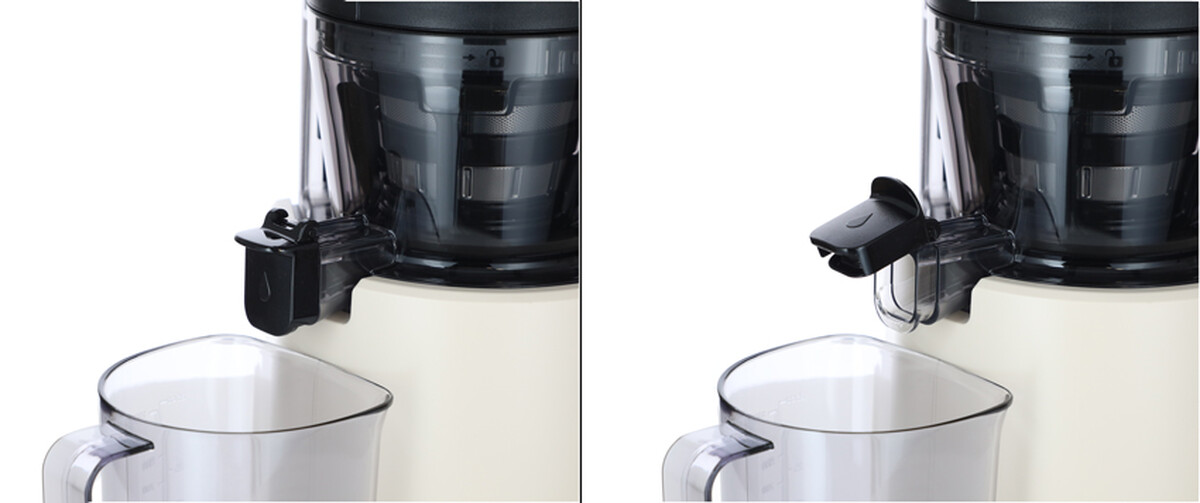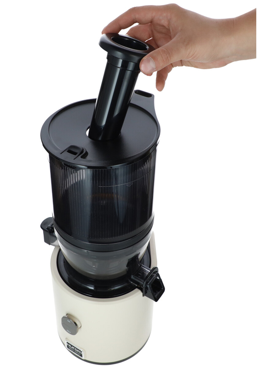 A készülék intuitív módon, egyszerűen össze- és szétszerelhető. A tartály fedele biztonságosan nyitható és zárható a préselés bármely pontján – a fedél felnyitásakor a készülék automatikusan leáll, és zárás után folytatódik a préselési folyamat. A fedélen egy kis nyílás is található, amelyen keresztül a motor működése közben is adagolhat további hozzávalókat anélkül, hogy a készüléket fel kellene nyitni.
