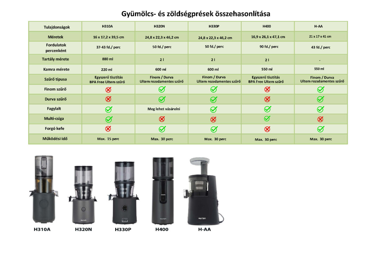 - Hurom H400 gyümölcsprés