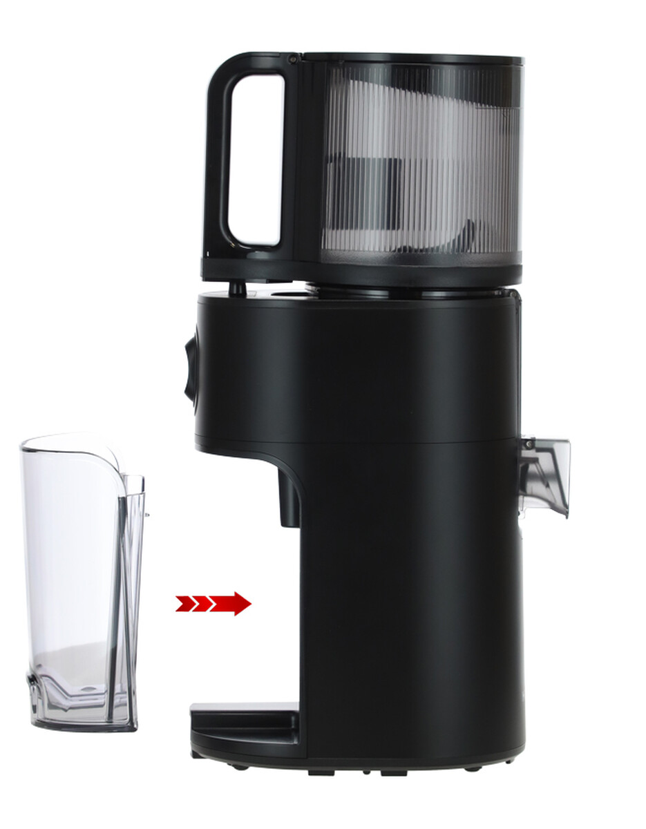 A készülék össze- és szétszerelése egyszerű, intuitív módon történik. Az edény fedele használat közben bármikor biztonságosan nyitható és zárható - kinyitásakor a facsaró működése automatikusan leáll, bezárásakor pedig újra folytatódik a préselési folyamat. Ezen kívül van egy kis nyílás a fedélen, amelyen keresztül akár járó motor mellett is hozzáadhat más összetevőket anélkül, hogy kinyitná.