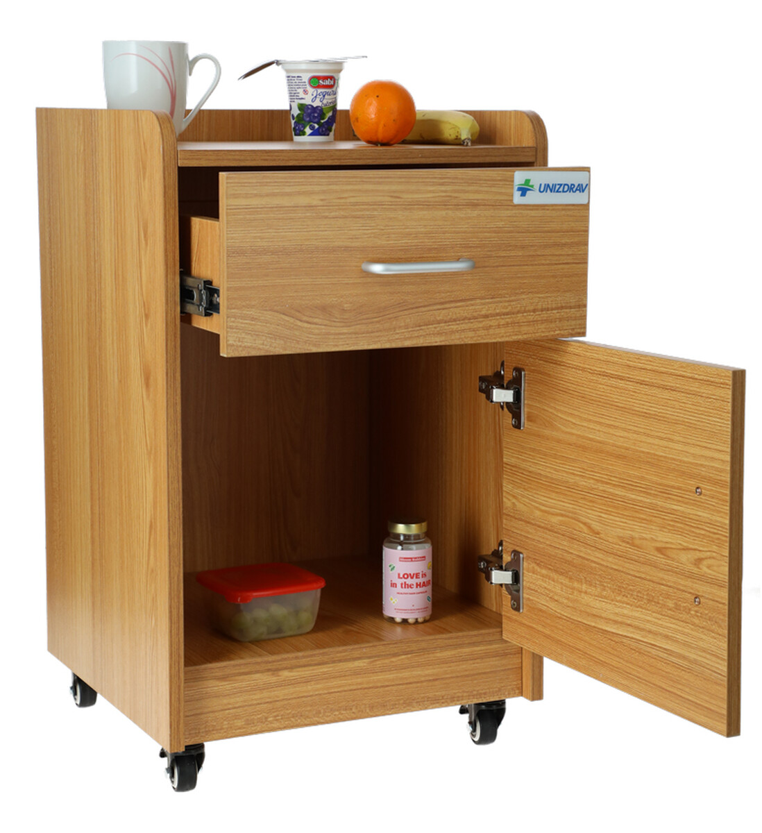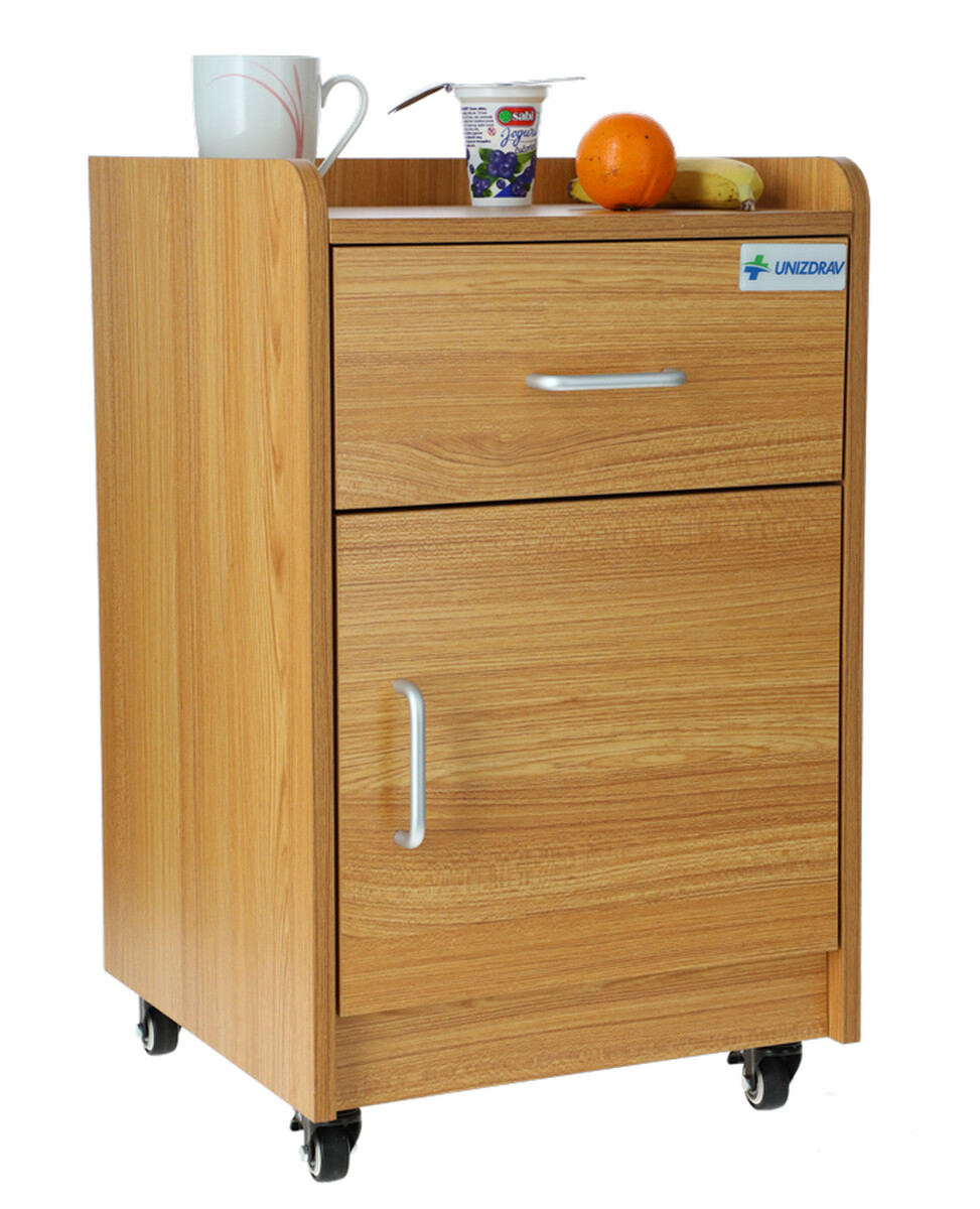 A MEDIK éjjeliszekrény esztétikus bükkfa dizájnnal praktikus és funkcionális kiegészítő egészségügyi intézményekbe, valamint otthoni környezetbe is. A betegek számára bőséges tárolóhelyet biztosít gyógyszerek és személyes tárgyak számára, melyeket a fekvőágy mellett mindig kéznél kell tartani.