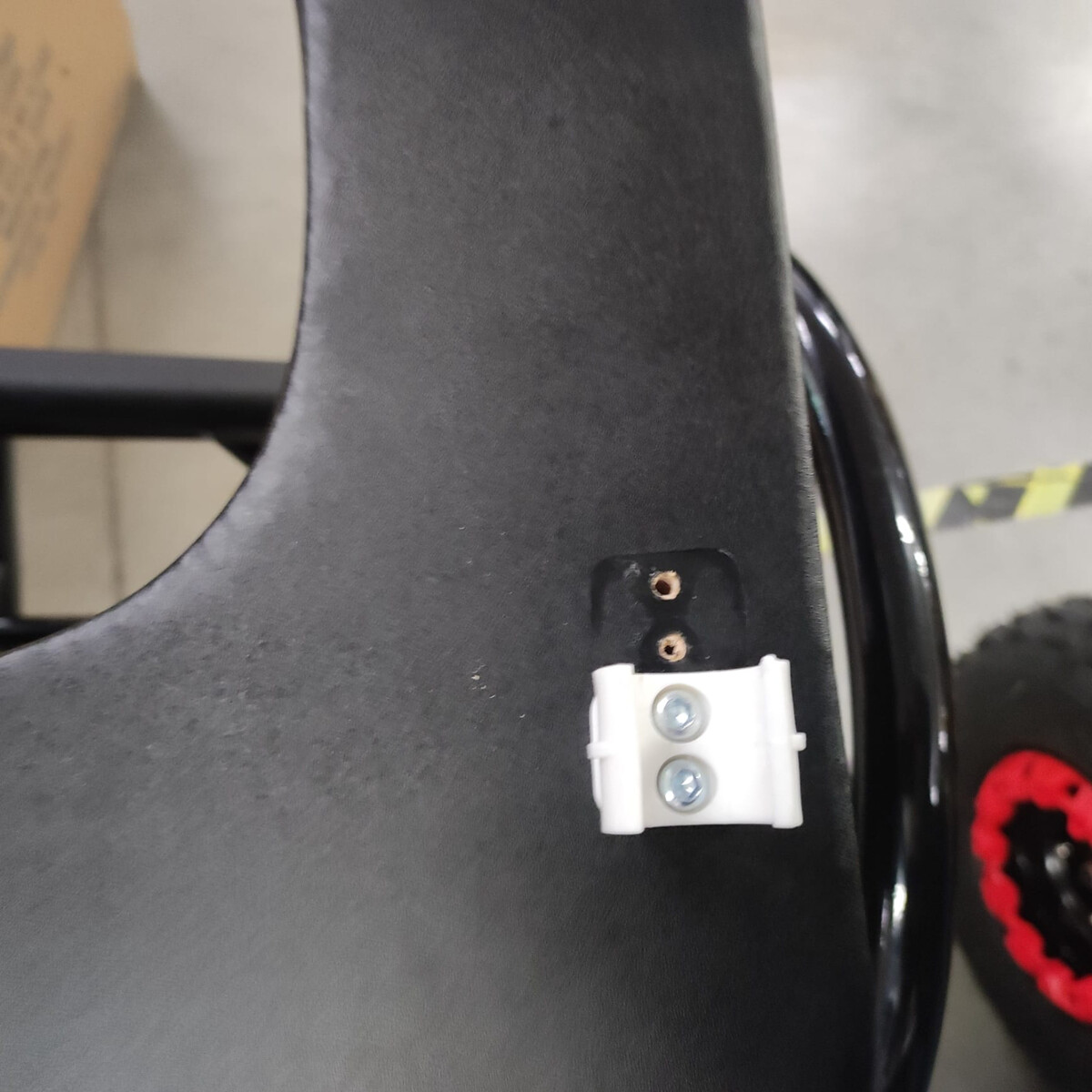 Teljesen működőképes áru kisebb hibákkal – az ülésen, a rögzítés (fogás) helyén a felületi réteg mechanikailag sérült.