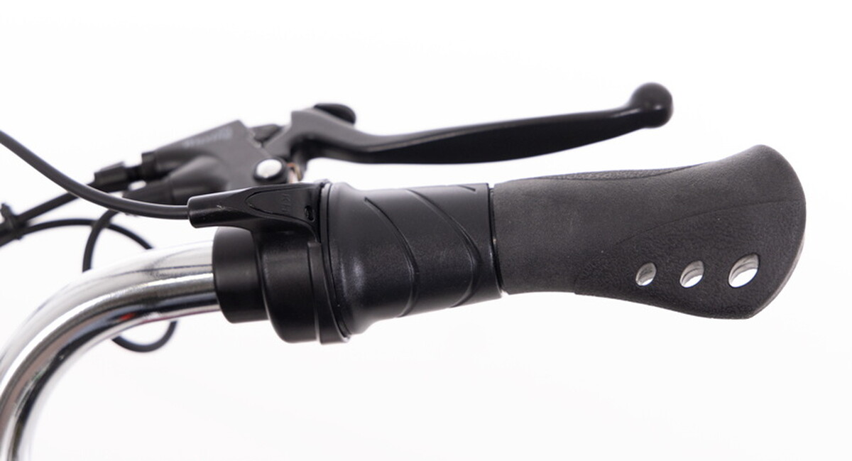 A kerékpár vezérlése egyszerűen egy forgó szabályozóval és egy fényjelzéssel ellátott kezelőpanel segítségével történik. Az átlátszó vezérlőegységen a következőket találja: