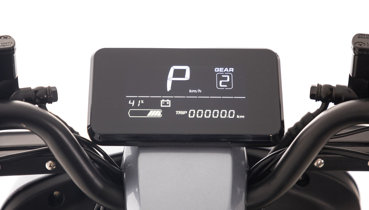 A jól átlátható digitális kijelzőn megjelenik az aktuális sebesség, az akkumulátor töltöttségi szintje és a választott sebességfokozat, így a vezetés során minden fontos adatot folyamatosan nyomon követhet. A hasznos funkciók közé tartozik a hátramenet (R-mód) is, amely jelentősen megkönnyíti a tolatást és a manőverezést szűk helyeken.