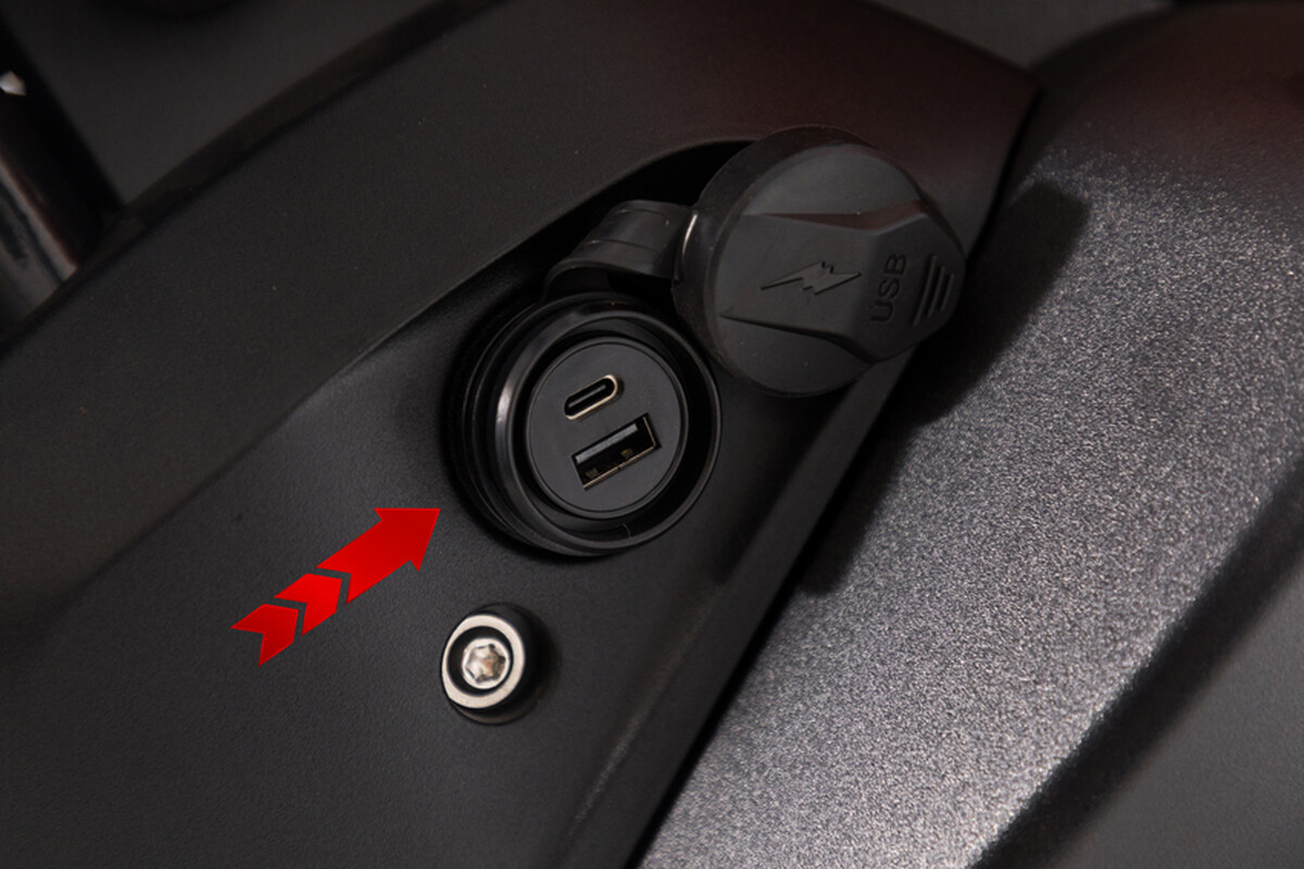 A gyakorlati felszereltség részét képezi a beépített mobiltelefon-tartó GPS támogatással, valamint USB-A és USB-C csatlakozók, így útközben is kényelmesen töltheted készülékeit.