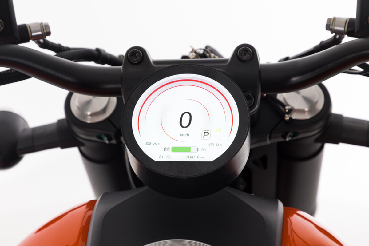A kör alakú TFT kijelző modern megjelenésével és könnyen olvasható formátumával jeleníti meg az összes fontos adatot – sebesség, akkumulátor töltöttségi szint, választott menetmód – mind egy helyen, jól átláthatóan.