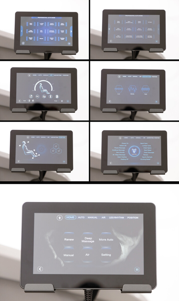 Lehetőség van a masszázs időtartamának (5 – 30 perc között), a melegítési területnek, a masszázsfejek szélességének, sebességének és nyomásának, valamint a légpárnák területének és intenzitásának, illetve a görgők helyzetének egyedi beállítására. Ezenkívül külön rezgésszabályozást is tartalmaz a lábtérben, valamint az ülés beállításának lehetőségét, beleértve a lábtartó meghosszabbítását is.