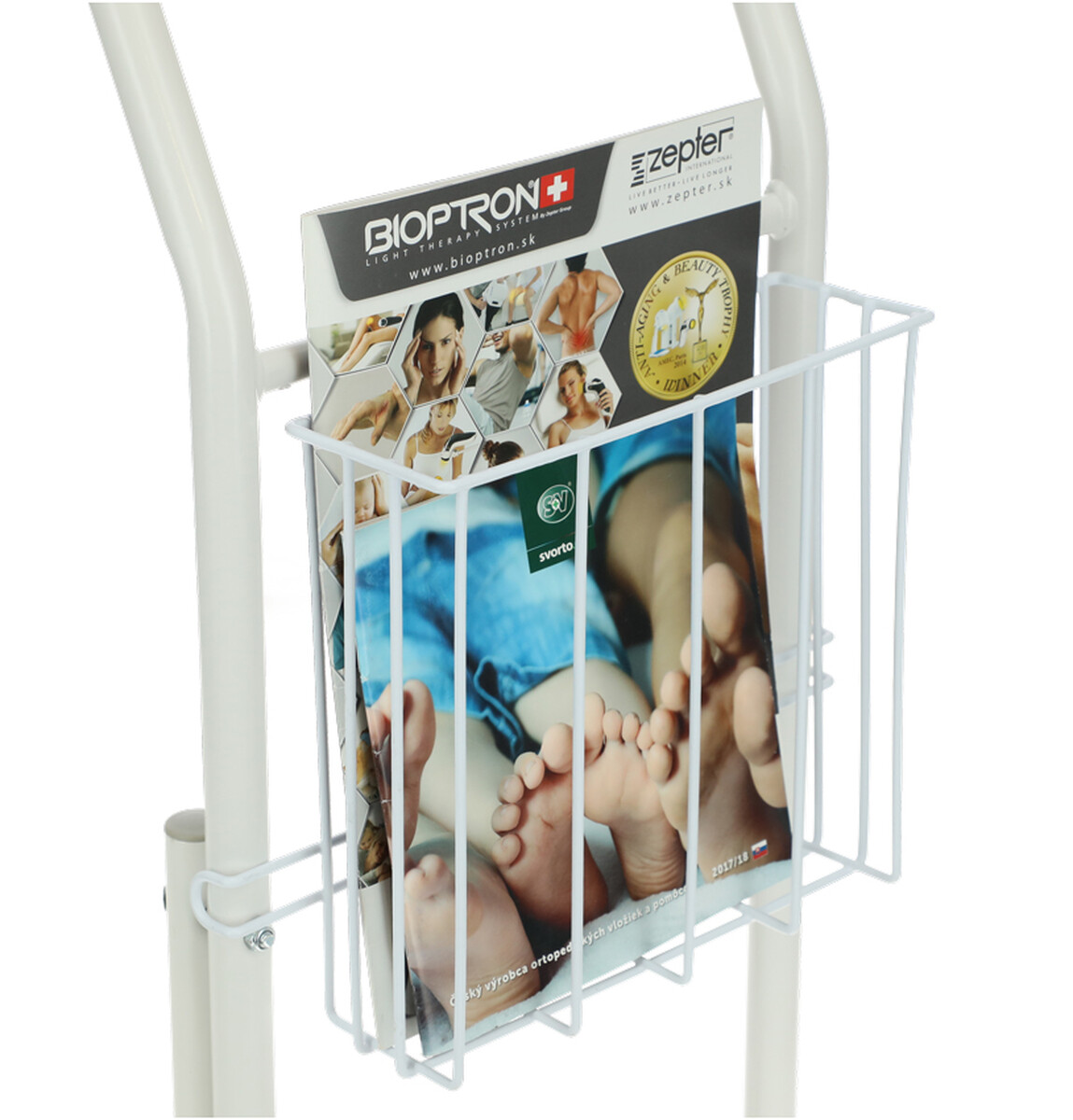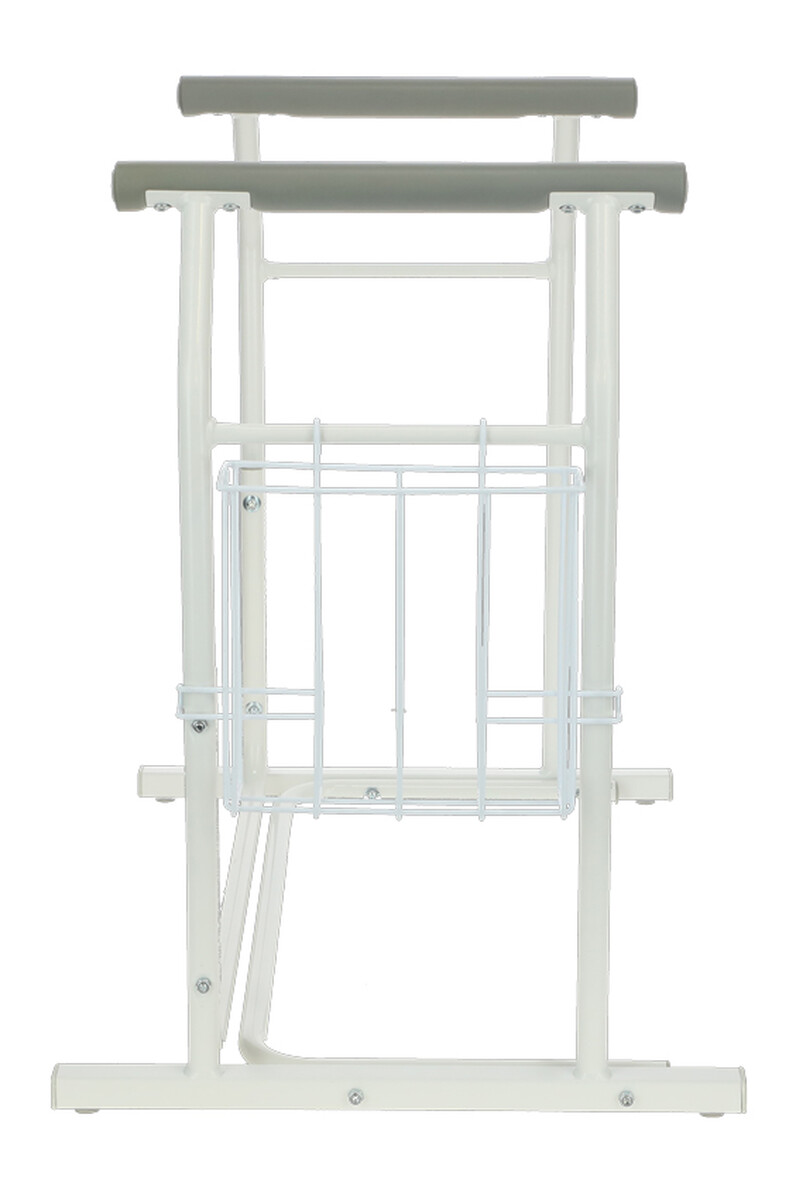 Hasznos kiegészítő a tárolórész, amely alkalmas higiéniai eszközök, magazinok vagy egyéb apróságok elhelyezésére. A függeszthető kosár tetszőlegesen a WC kapaszkodó bármelyik oldalára rögzíthető, így mindig könnyen elérhető marad. Ennek köszönhetően minden szükséges dolog kéznél lesz anélkül, hogy fel kellene állni vagy feleslegesen nyújtózkodni kellene.