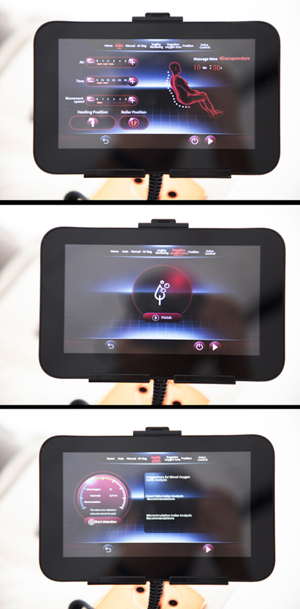 Az összes elérhető funkció könnyen kezelhető az integrált vezérlőegységen keresztül, amely felhasználóbarát kezelőfelülettel rendelkezik. A nagy méretű érintőképernyős LCD kijelző és a forgatható vezérlőgomb lehetővé teszi a masszázs teljes testreszabását. A fejlett hangvezérlésnek köszönhetően (angol nyelven) egyszerű hangutasításokkal is irányítható a fotel, így még kényelmesebb a használata.