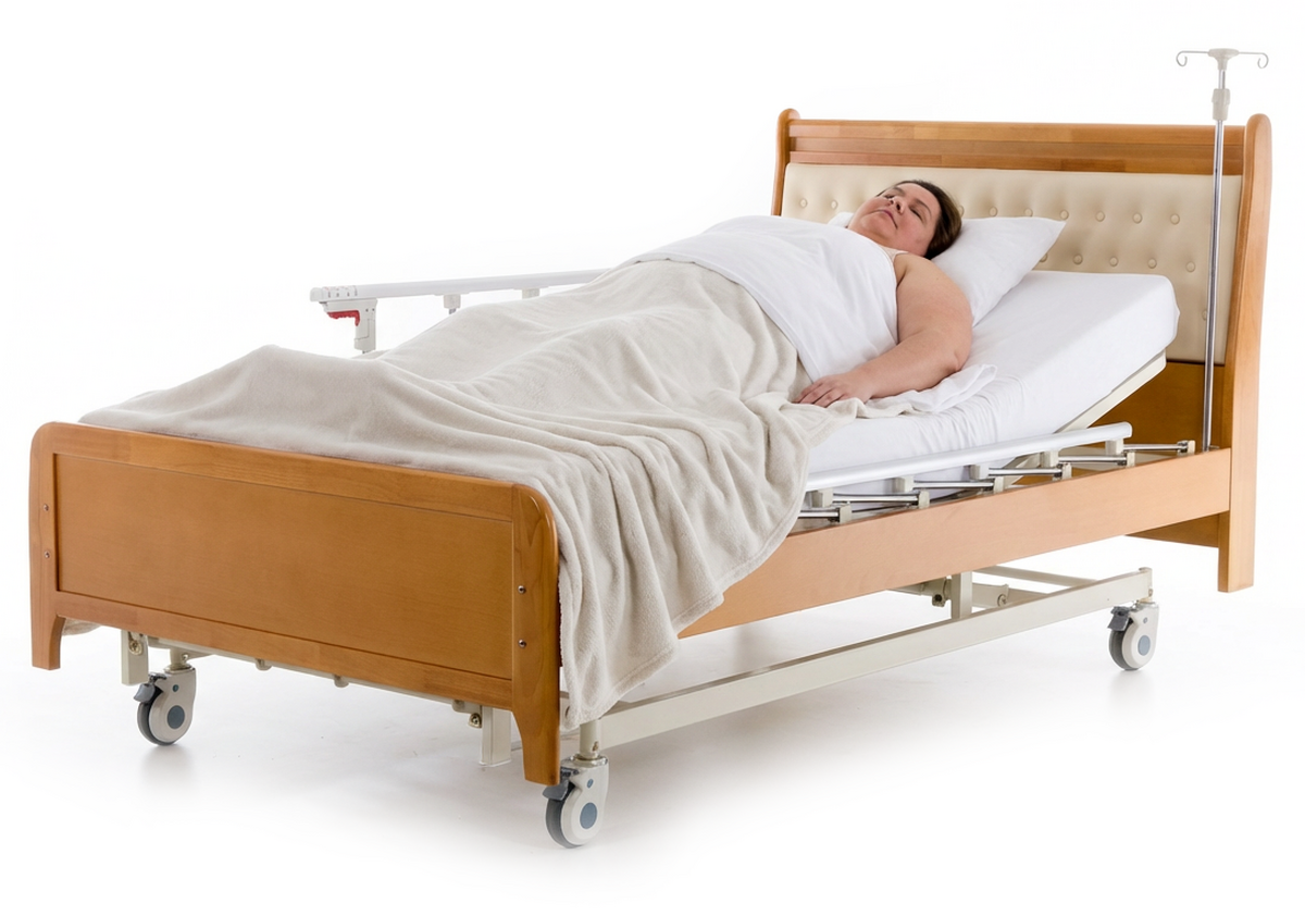 Extra széles, egészségügyi, elektromosan állítható ágy elegáns kialakítással, amely ideális otthoni használatra és ápolási intézményekbe egyaránt.