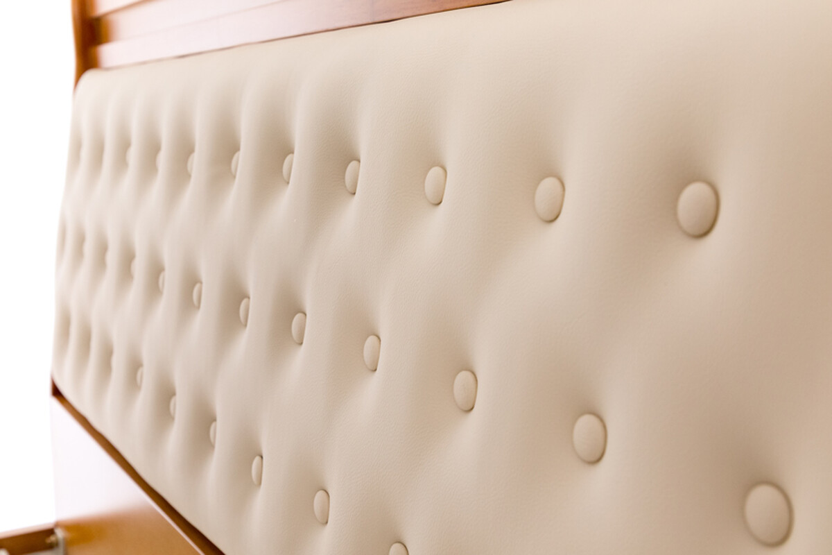 - Elegáns fa és műbőr kárpitozású dizájn
