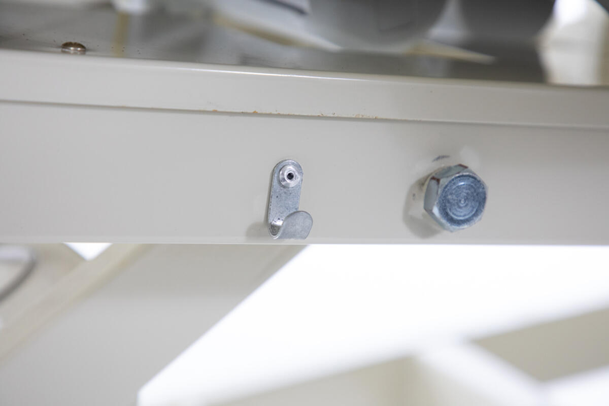 Összecsukható állványos ágykapaszkodó, a betegágy végébe helyezhető.