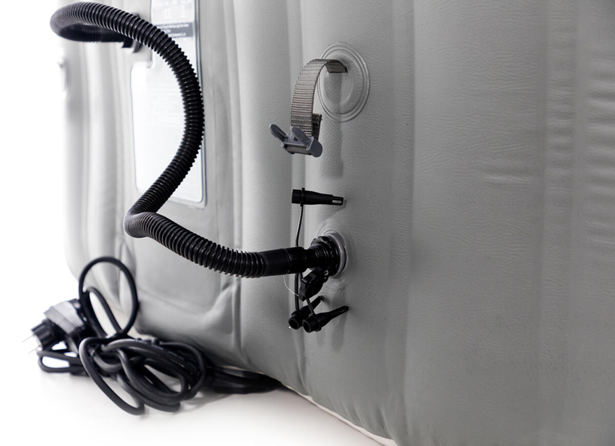 Az UNIZDRAV pezsgőfürdő ötvözi a klasszikus felfújható medence és a teljes értékű pezsgőfürdő előnyeit. Akár 130 masszázsfúvókát kínál, amelyek több ezer buborékot hoznak létre az egész test intenzív és egyenletes masszírozásához. A finom vízsugarak oldják az izomfeszültséget, serkentik a vérkeringést és mély relaxációt biztosítanak – ideális egy fárasztó nap vagy sporttevékenység után. Csak merüljön el, és hagyja, hogy magával ragadja a tökéletes wellness élmény.