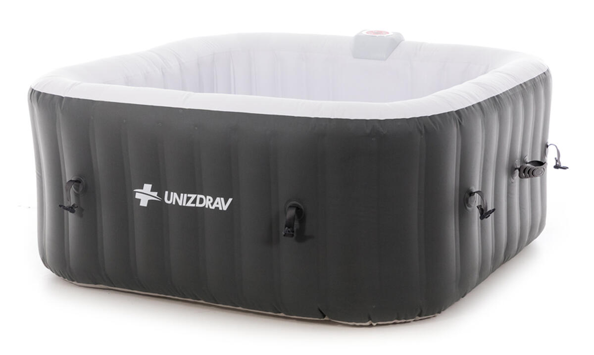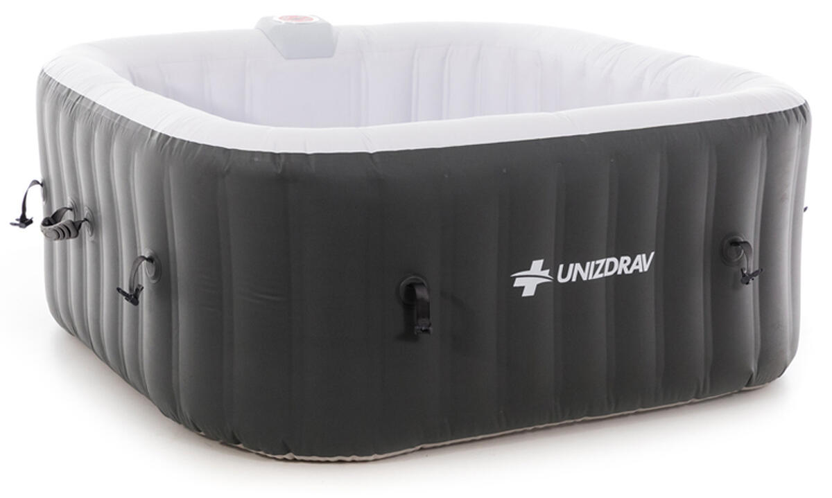 Az UNIZDRAV felfújható pezsgőfürdő alacsony súlyával és egyszerű kezelhetőségével tűnik ki. A felfújáshoz elég megnyomni a BUBBLE gombot, és néhány perc múlva már készen áll a feltöltésre. Szezon végén gond nélkül leereszthető, összehajtható és eltehető. Télen is használható – csak át kell helyezni egy fűtött helyiségbe, és be kell tartani az ajánlott minimális használati hőmérsékletet (4 °C felett).