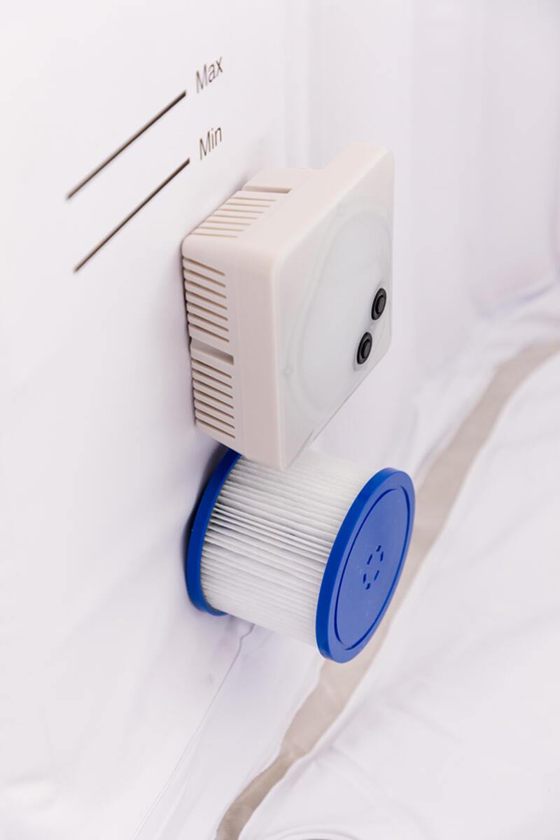 A beépített szűrőrendszer mindig tisztán és higiénikusan tartja a vizet. A szűrőbetét felfogja a szennyeződéseket, hajszálakat és apró részecskéket, védi a szivattyút és meghosszabbítja a pezsgőfürdő teljes élettartamát.