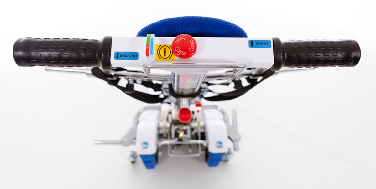 Az alapfelszereltség része a vészleállító funkció, a véletlen elindulás elleni védelem, a dőlésszögérzékelő LED, valamint a töltöttségi szint kijelző is.