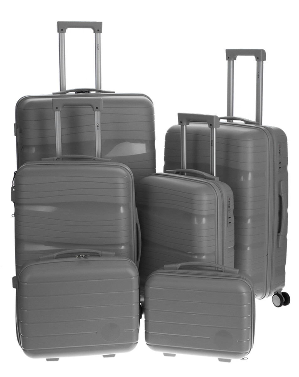 A kínálatban hatféle méret közül választhat – a hosszabb utakhoz ideális nagy méretű bőröndöktől kezdve, a praktikus kézipoggyászon át egészen a kompakt kozmetikai táskákig.