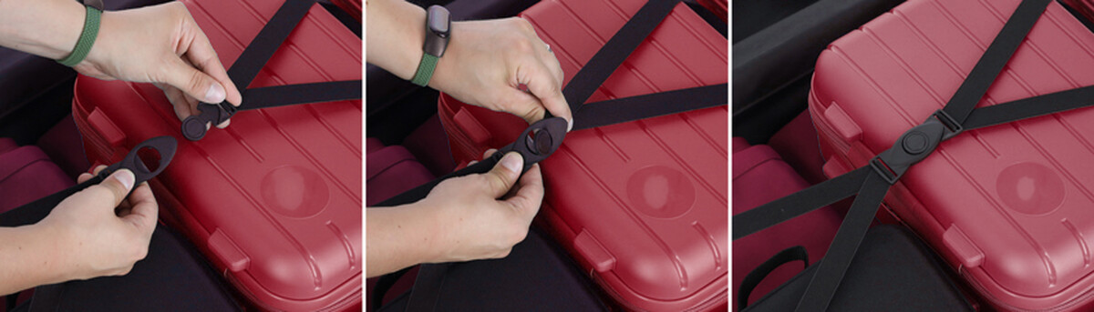 A bőrönd belső tere két részre van osztva a praktikus rendszerezés érdekében. Az egyik oldalon rugalmas keresztpántok segítik a ruhák rögzítését, míg a másik oldalon egy teljes felületű, cipzáras zárású rekesz, valamint egy külön hálós zseb található az apróbb tárgyak számára.