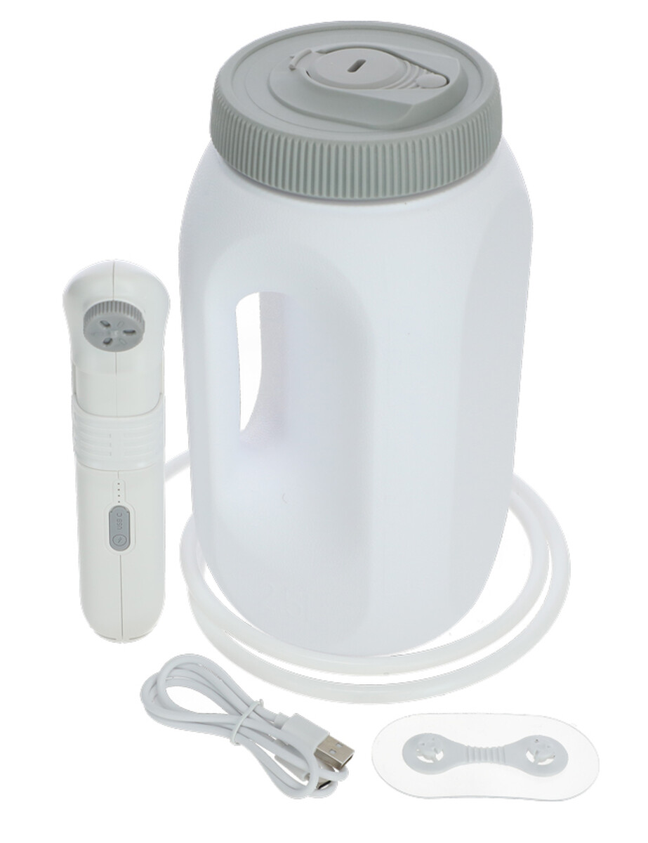 A 2,5 literes tartályt elegendő megtölteni tiszta vízzel, majd belehelyezni a zuhanycsövet, amelynek végén egy szivattyú található. A készülék bekapcsolása után a víz folyamatosan áramlik a szilikoncsövön keresztül a zuhanyfejbe, ahol kétféle üzemmódban állítható a vízsugár intenzitása – enyhébb vagy erősebb.