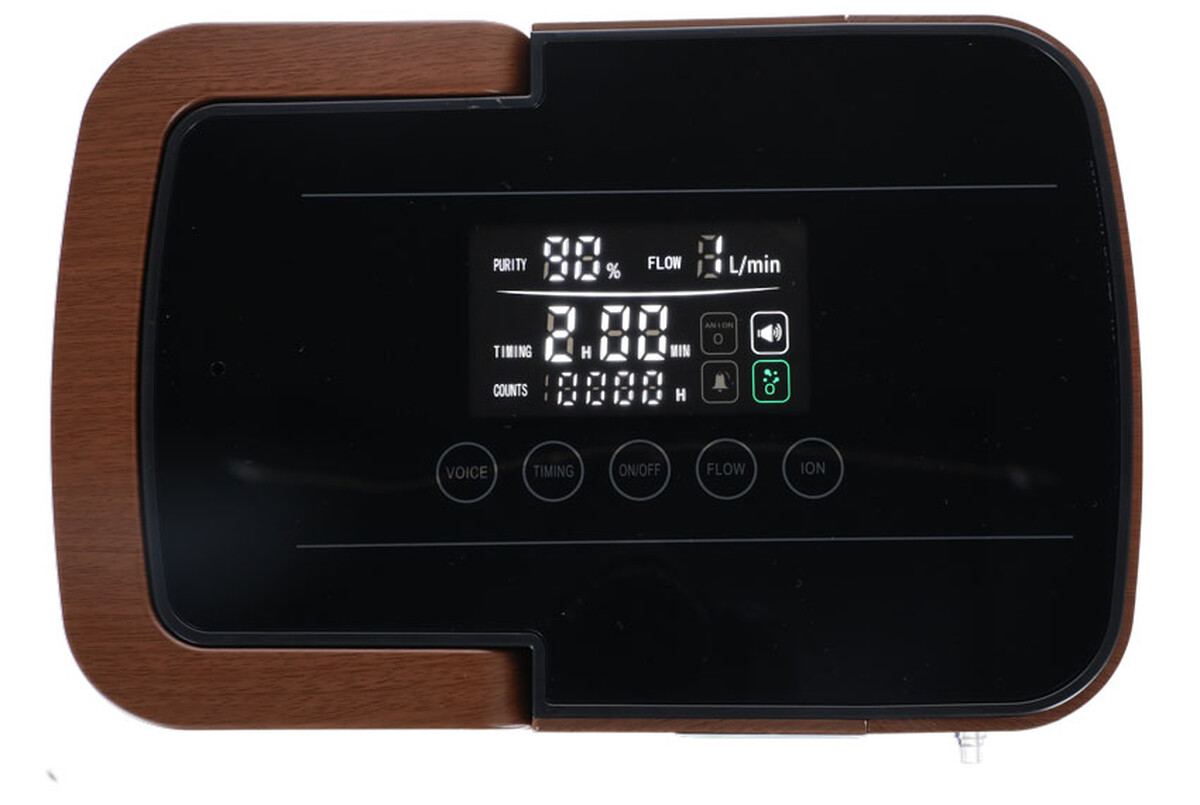 A készülék áttekinthető, háttérvilágítással ellátott kijelzővel rendelkezik, amelyen megjelenik az aktuális áramlás, az oxigénkoncentráció, az eltelt idő és az üzemórák száma. A még kényelmesebb használat érdekében a csomag távirányítót is tartalmaz.