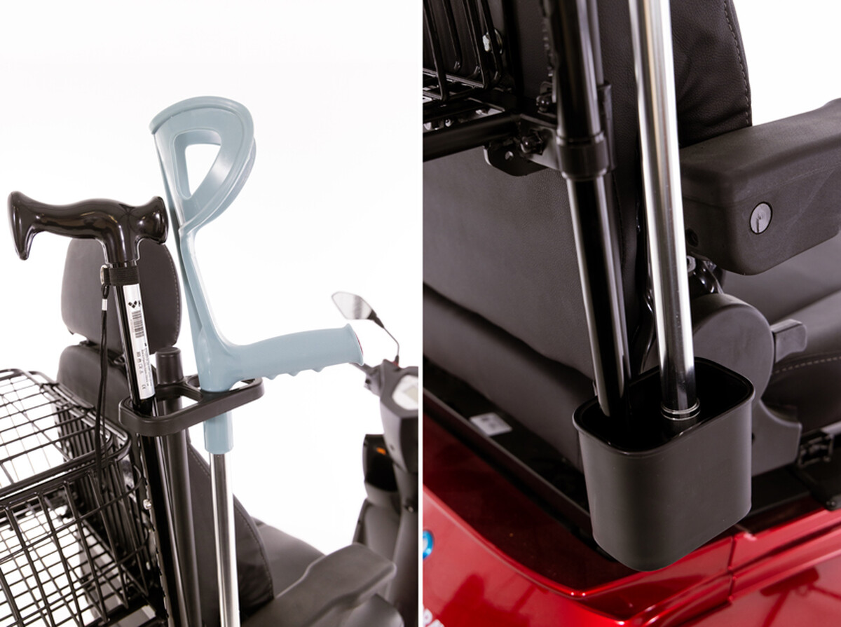 Praktikus mankó- és sétapálcatartó, amely alkalmas a kínálatunkban szereplő elektromos robogókhoz.
