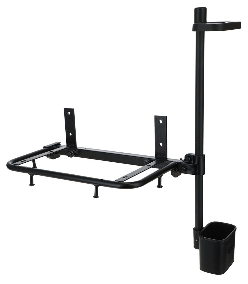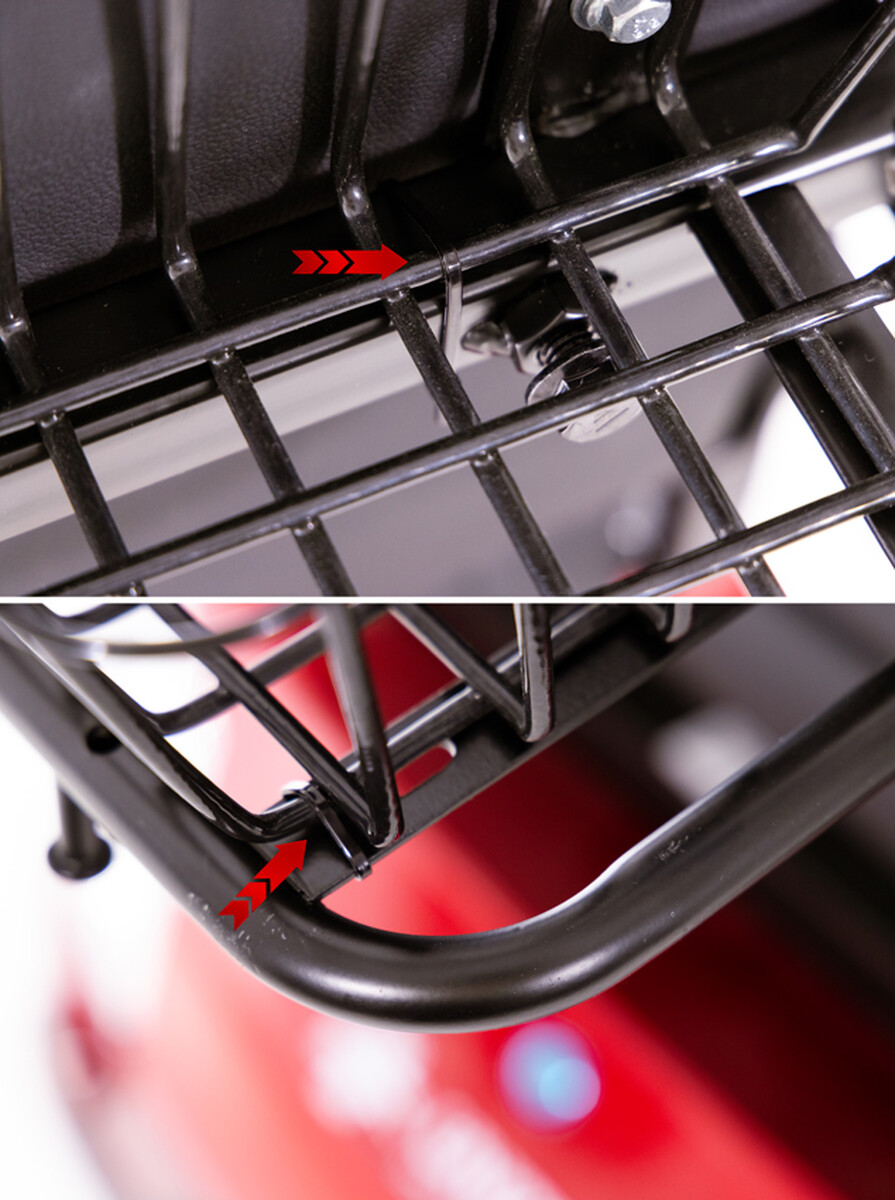 A tartó egy szilárd vázból és egy állványból áll. A vázat egyszerűen felszerelheti a robogó hátsó részén a dobozra/kosárra, majd az állványt csak be kell csúsztatnia a kívánt távolságra.