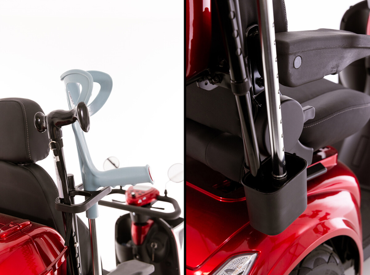 A kiegészítő tartó botokhoz és mankókhoz kifejezetten a kínálatunkban szereplő kiválasztott elektromos robogókhoz lett tervezve. A tartó segítségével kényelmesen és biztonságosan szállíthatja a segédeszközöket, úgy, hogy azok ne zavarják a vezetést és ne csökkentsék a kényelmet.