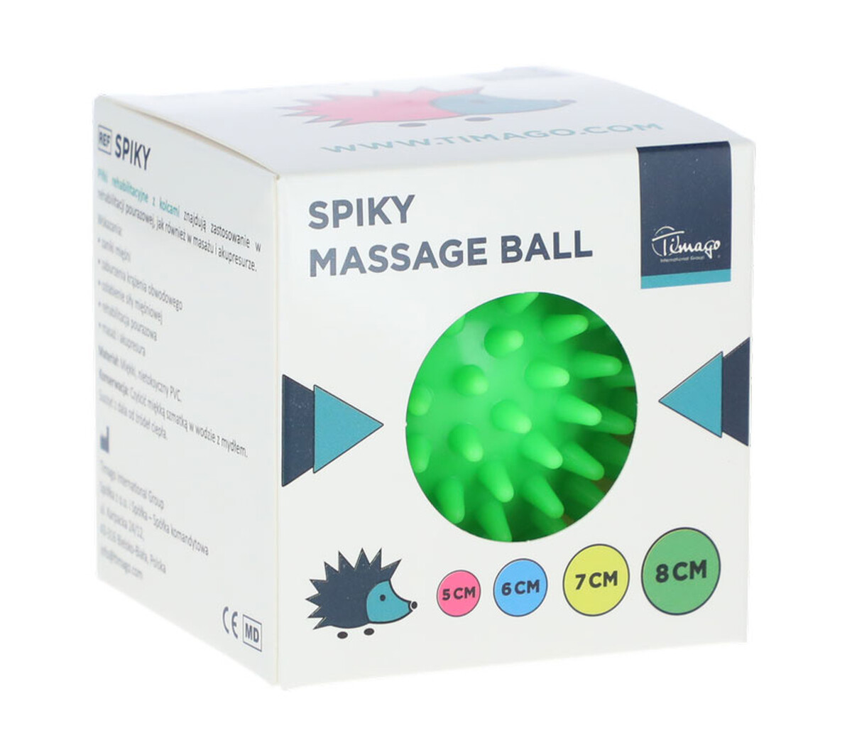 A tüskékkel ellátott rehabilitációs masszázslabda hatékonyan stimulálja az akupunktúrás pontokat. Hozzájárul a vérkeringés javításához, a feszültség csökkentéséhez és a szövetek természetes rugalmasságának helyreállításához.