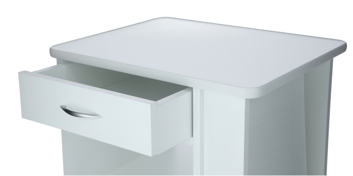 Az éjjeliszekrény nagyon hasznos és praktikus, mivel tárolóhelye egy fiókból és egy szekrényből áll. Ezen kívül az asztalhoz tartozik egy etetőlap is, mely a megfelelő zár segítségével könnyen fel- és lehajtható. Az asztal az ágy jobb és bal oldalán is használható.