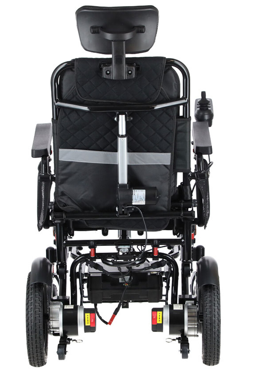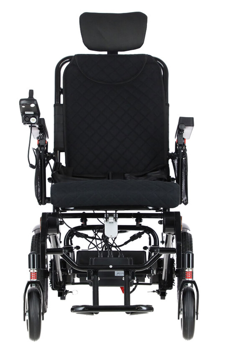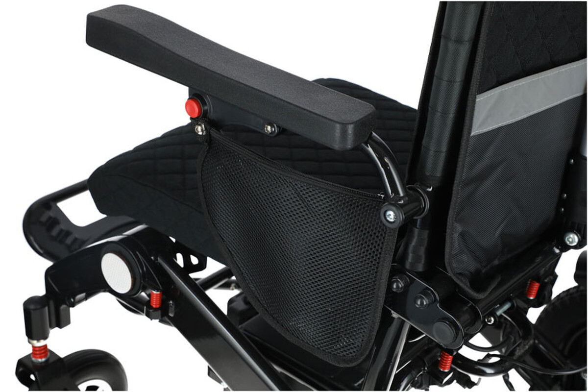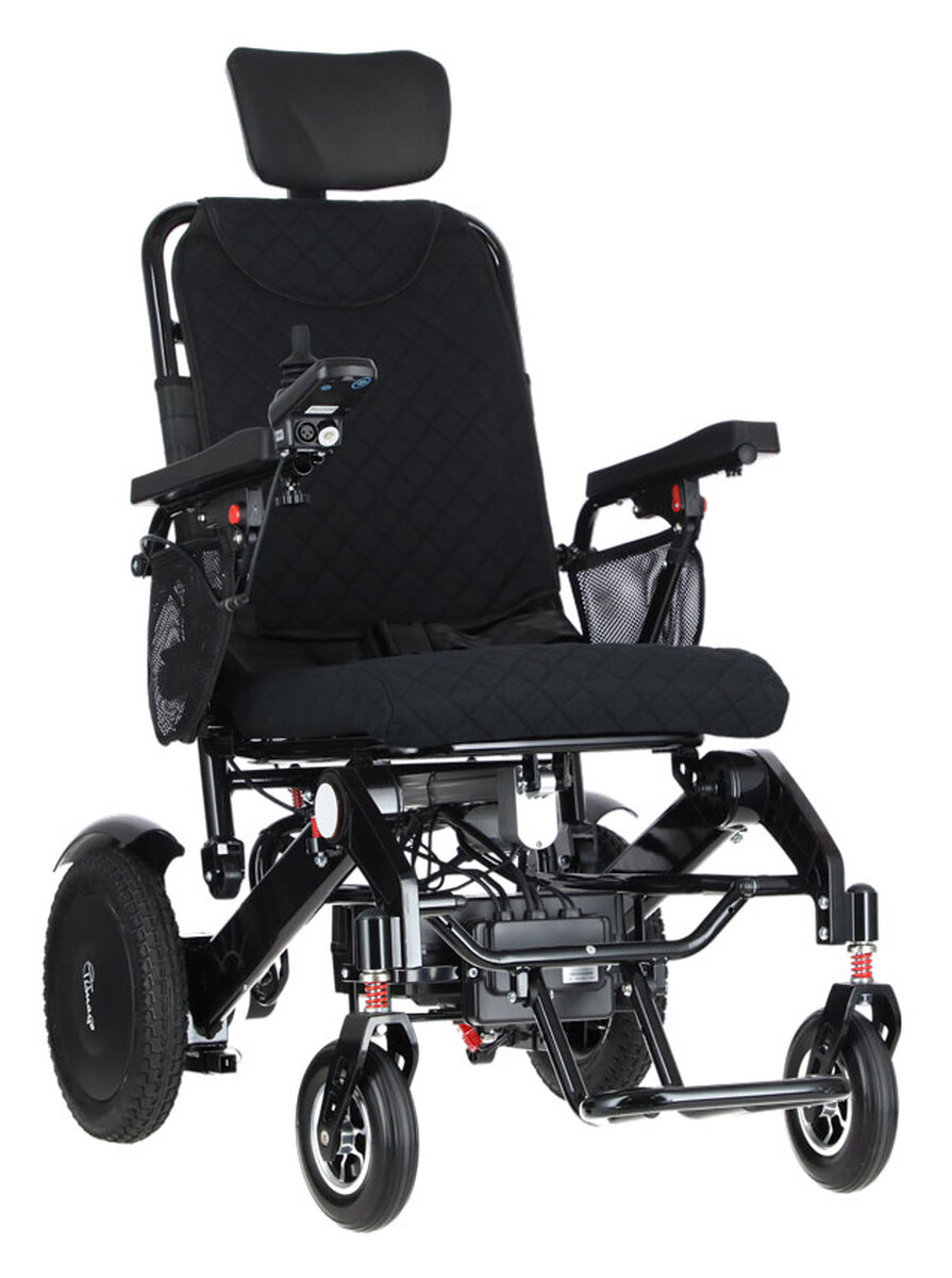 A kényelmet fokozza a megerősített ülés, az állítható háttámla és a magasságban állítható fejtámla. A könnyebb átszállást a összecsukható kartámaszok és a lehajtható lábtámasz segítik. Egyenetlen terepen a hárompontos felfüggesztés hatékonyan csökkenti a rezgéseket és tompítja az ütéseket, így a kerekesszék vezetése még komfortosabbá válik.