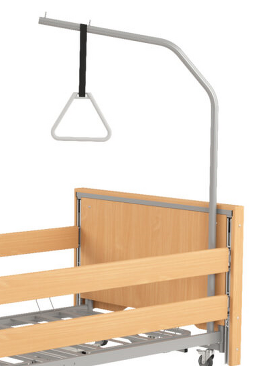 A pozicionáló ágy egy kapaszkodót is tartalmaz, amely a páciens leterhelt testrészeinek könnyítésére szolgál és segíti a helyzetváltoztatást. A lehajtható fa oldalfalak növelik a biztonságot és védenek az eséssel szemben.