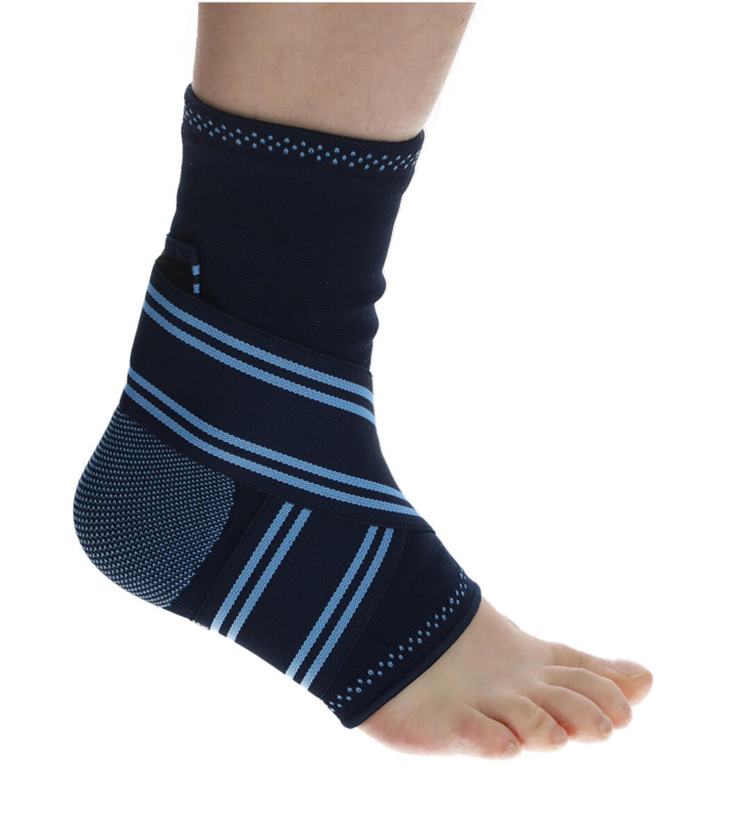 A rugalmas elasztikus anyagot kényelmes, pántszerű rögzítés egészíti ki, amely minden oldalról egyenletesen stabilizálja a bokát. Ez elősegíti a megfelelő vérkeringést, csökkenti a fájdalmat, és támogatja a gyorsabb gyógyulást.