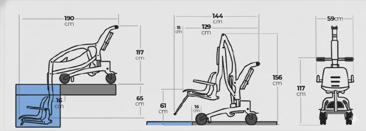 A hidraulikus magasságállítással rendelkező segítő emelőberendezés egyszerűsíti a betegek mindennapi áthelyezését az ágyba, kerekesszékbe vagy WC-re.