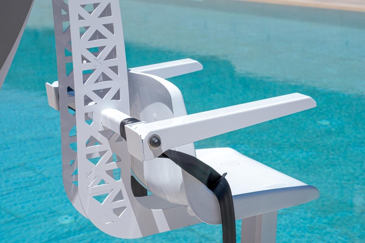 A hordozható medencelift biztonságos, kényelmes és önálló bejutást tesz lehetővé a medencébe mozgásukban korlátozott személyek és idősek számára.