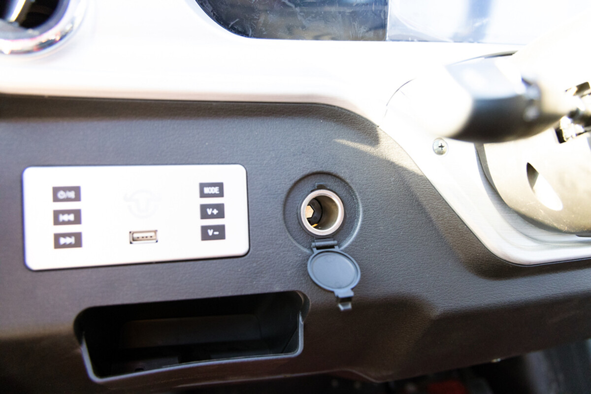 Télen nagy előnyt jelent a fűtés és a szélvédő fűtése, amely megakadályozza a párásodást. Különösen hasznos kiegészítő a tolatókamera vezetővonalakkal és integrált, könnyen olvasható kijelzővel, amely mutatja az akkumulátor állapotát és a jármű mozgását. A kijelzőn látható a pillanatnyi sebesség és a megtett kilométerek száma is.
