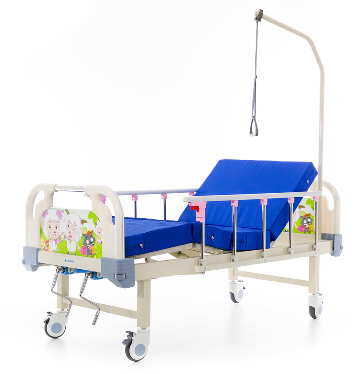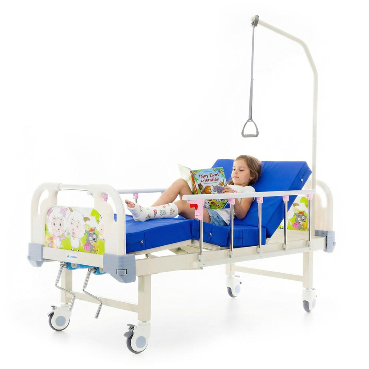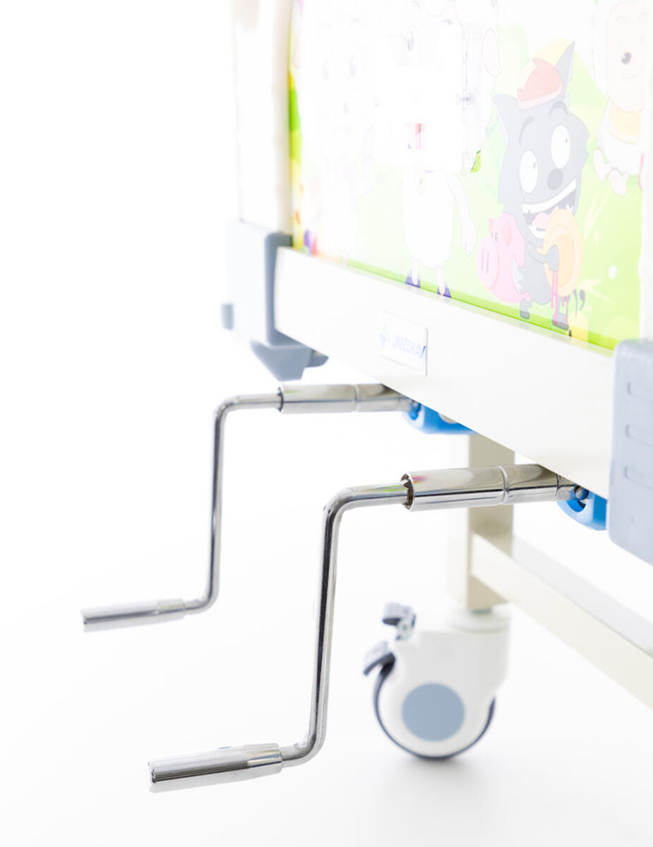 A mechanikus pozicionáló ágy gyerekeknek ötvözi a szabványos kórházi ágy funkcióit és biztonságát a játékos, színes dizájnnal, amely kellemesebbé teszi a kis betegek számára az ágyban töltött időt. Alkalmazható egészségügyi intézményekben, valamint otthoni ápolás során is.